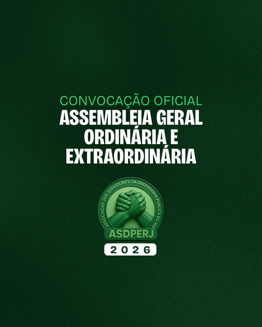 A presença dos associados na Assembleia Geral Ordinária é fundamental para a construção de uma categoria participativa nas decisões as quais envolvem não só a ASDPERJ, mas também o futuro da carreira do quadro de apoio da Defensoria Pública do Rio de Janeiro. Abaixo publicizamos às informações necessárias para a participação de todos os associados da ASDPERJ.